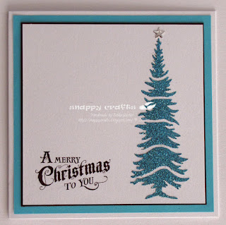 I have used a tree stencil by Imagination crafts together with Turquoise and Sage Green Sparkle medium. The sentiment is by Waltzing mouse Compliments of the season. I have layered on black then matching coloured card stock from my stash adding a wee metal star on the trees to finish.